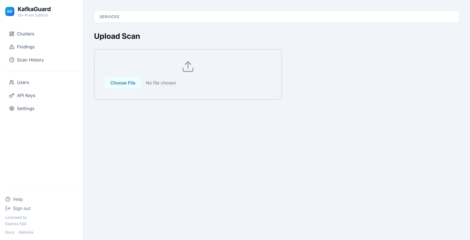 KafkaGuard On-Prem is a fully self-hosted, air-gapped Kafka compliance platform. It includes a web dashboard, REST API, scan processor, and all infrastructure — deployable with a single installer script.
